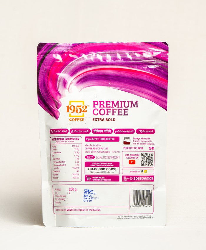 "Indulge in the harmonious blend of 70% Arabica and 30% Robusta that crafts the unique taste profile of 1952 Premium Coffee. A symphony of flavors gracefully pirouettes across your palate, each sip unveiling the extraordinary depth of this meticulously curated blend. Let yourself be captivated by its bold, intoxicating aroma, the perfect prelude to the sensory indulgence that awaits.